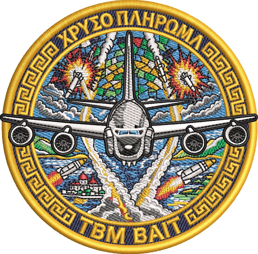 This patch measures 4", DIE-CUT, and is 100% embroidered w/ Velcro.